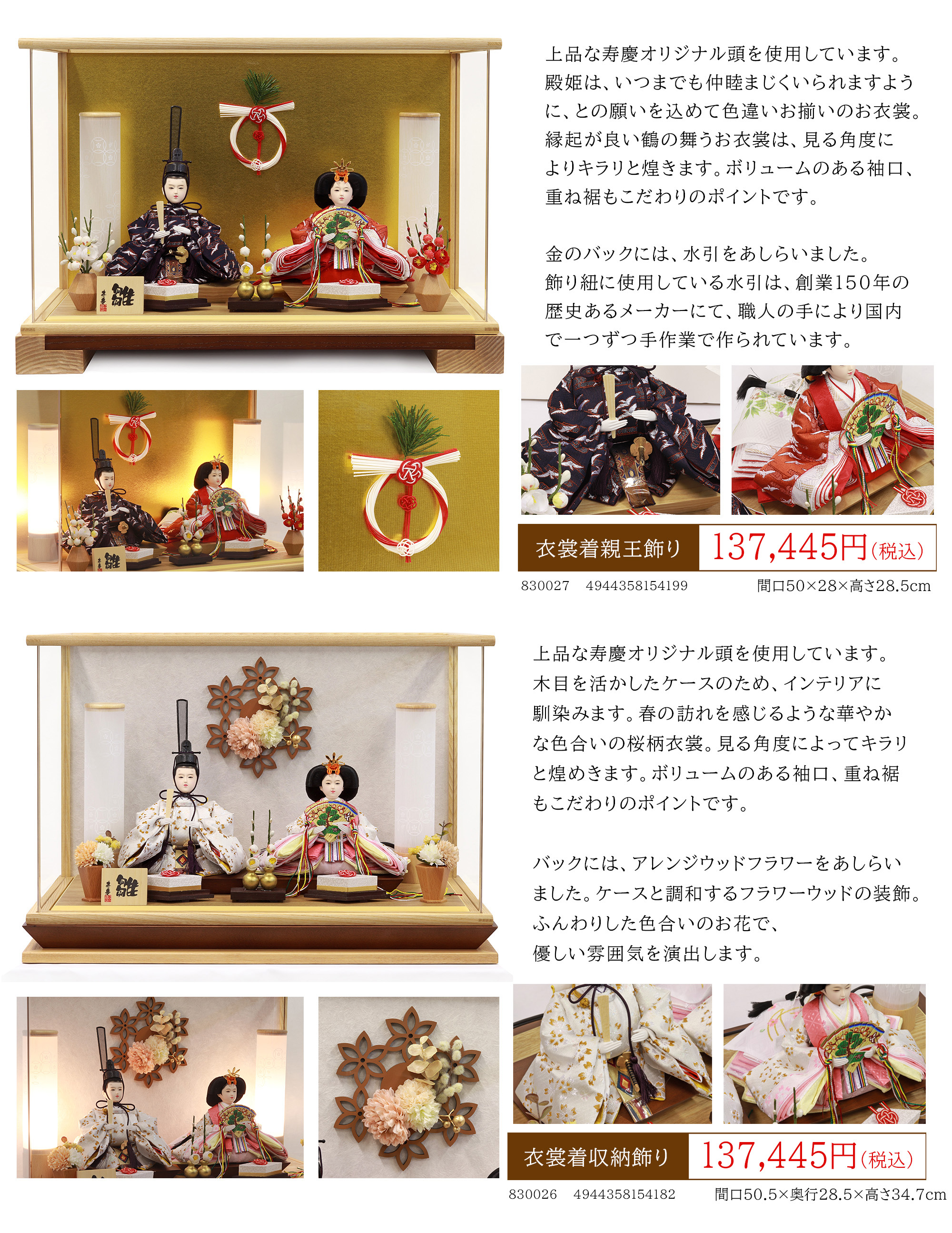 本社大展示場では、弊社ブランド「寿慶」こだわりのお人形を中心に